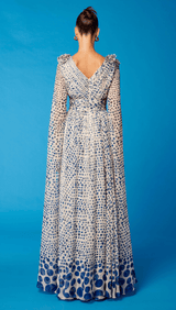 Cosiani Cream & Blue Polka Dot Gown