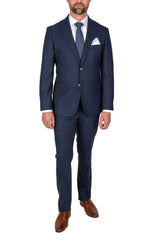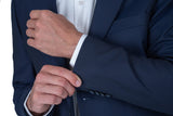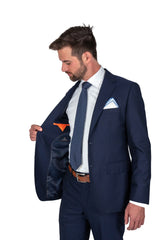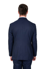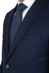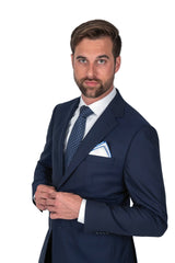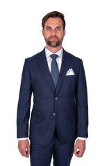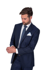 Crafted from a fine Italian wool and cashmere blend, this slim fit designer men’s suit in a classic shade of Navy is suitable for business or special events.