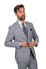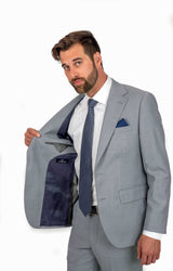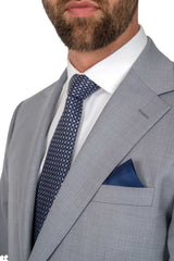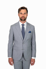 Crafted from a fine Italian wool and cashmere blend, this slim fit designer men’s suit in a classic shade of Light Grey is suitable for business or special events.