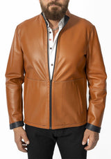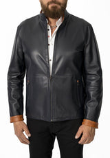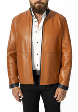 This timeless Cosiani leather jacket is made with all delicate lambskin leather to ensure durability and a lightweight feel. This unique piece is reversible with both navy and tan hues for you to enjoy two leather jackets in one. This sporty jacket is perfect to wear casual with jeans.