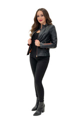 This timeless Cosiani leather jacket is made with all delicate lambskin leather to ensure durability and a lightweight feel. This sporty jacket is perfect to wear casual with jeans.