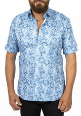 Fresh and full of life. Inspired by the frescos from the coastal cities of Morroco, this blue and white mosaic tile print short sleeve shirt is a stunner with jeans.