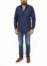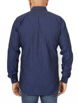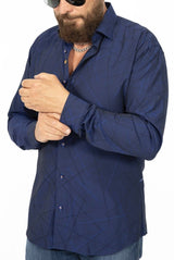 You do the math. A modern marvel, this navy blue dress shirt comes elevated with geometrical lines dispersed throughout.
