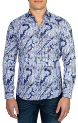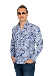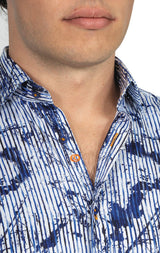 White & Blue Striped Splash Shirt