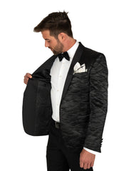 Presenting the Cosiani Shawl Lapel Ruffled Tuxedo Jacket, a masterpiece of refined elegance. Its distinctive ruffled satin pattern exudes sophistication, making it the perfect choice for formal affairs. Crafted with meticulous attention to detail, this jacket ensures you stand out effortlessly, embodying timeless style and luxury.