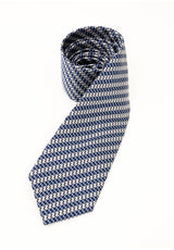 Elevate your style with our Blue & Grey Striped Silk Tie. Handcrafted in Italy from premium 100% silk, this sophisticated accessory features alternating blue and grey stripes, with embedded zigzag patterns adding a contemporary twist. Perfect for adding a touch of modern elegance to any ensemble, whether for business or special occasions.