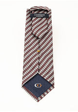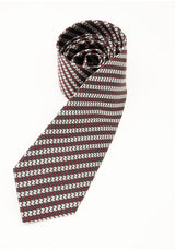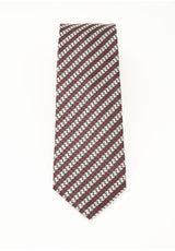 Refine your ensemble with our Burgundy & Grey Striped Silk Tie. Handcrafted in Italy from premium 100% silk, this sophisticated accessory features alternating burgundy and grey stripes, with embedded zigzag patterns adding a touch of modern flair. Perfect for elevating your look with subtle sophistication, whether for business meetings or formal events.