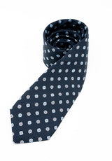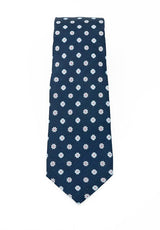 Elevate your look with our Navy Floral Silk Tie. Handcrafted in Italy from 100% silk, this sophisticated accessory boasts a classic navy base adorned with intricate white and lighter blue florals, accented by a subtle red center. Perfect for adding a touch of refined elegance to any ensemble, whether for business or special occasions.