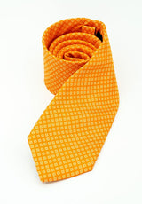 Make a bold statement with our Orange Diamond Silk Tie. Handcrafted in Italy from premium 100% silk, this striking accessory features a vibrant orange base adorned with a soft white diamond pattern. Perfect for adding a touch of modern sophistication to any ensemble, whether for business meetings or special occasions.