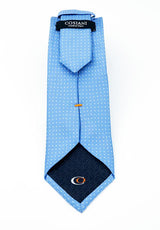 Enhance your ensemble with our Sky Blue Small Dotted Silk Tie. Handcrafted in Italy from premium 100% silk, this charming accessory features a serene sky blue base adorned with a subtle yet stylish soft white dotted pattern. Perfect for adding a touch of sophistication to any outfit, whether for formal events or everyday refinement.
