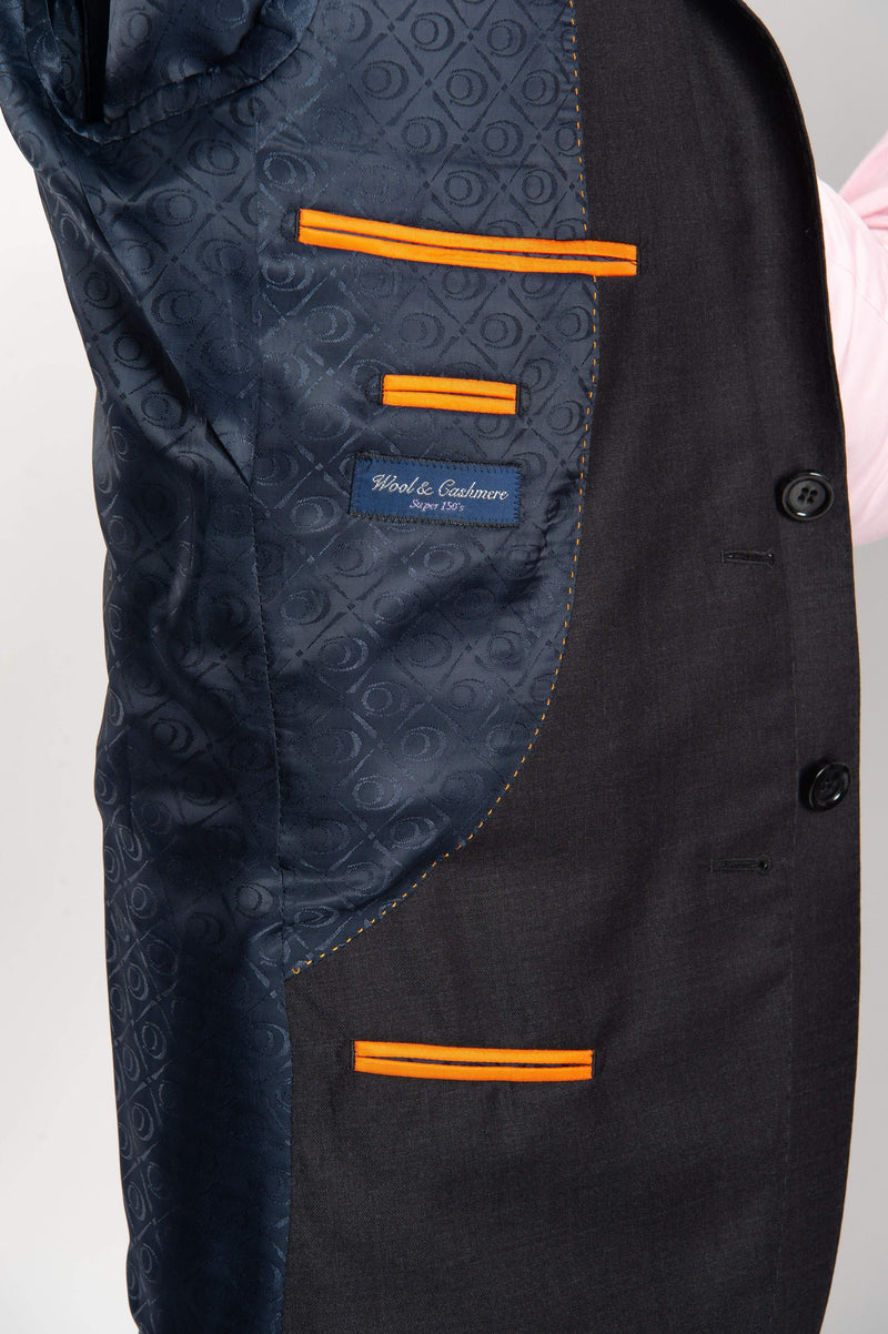 Material: 95% wool, 5% cashmere, Super 150 thread count, canvas (horsehair) interlining on jacket