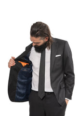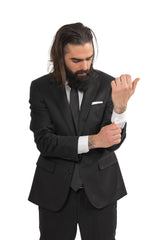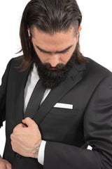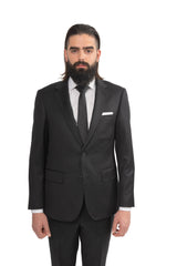 - Crafted from the finest Loro Piana Italian wool fabrics, this slim fit designer men’s suit in a classic shade of black with a soft texture is ideal for business or formal events.